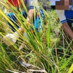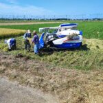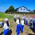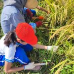 暑い中でしたが、楽しかった声、笑顔が田園に輝きました。良い体験になったことでしょう。先生と一緒に刈り取り後、米が炊飯できるまでの流れを確認していました。田園が広がる地域ならではの体験授業であり、頼もしい限りです。