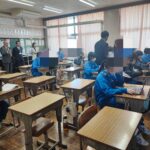 特定所管事務調査の項目「英語教育」について、東中学校においてオンライン英会話授業を視察、校長・担当教員と意見交換をおこないました。
