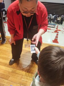 孫と一緒に見学に伺いました。高校生が受付をしてくれ、大きなチェックカードを持って体験へlet’s go!